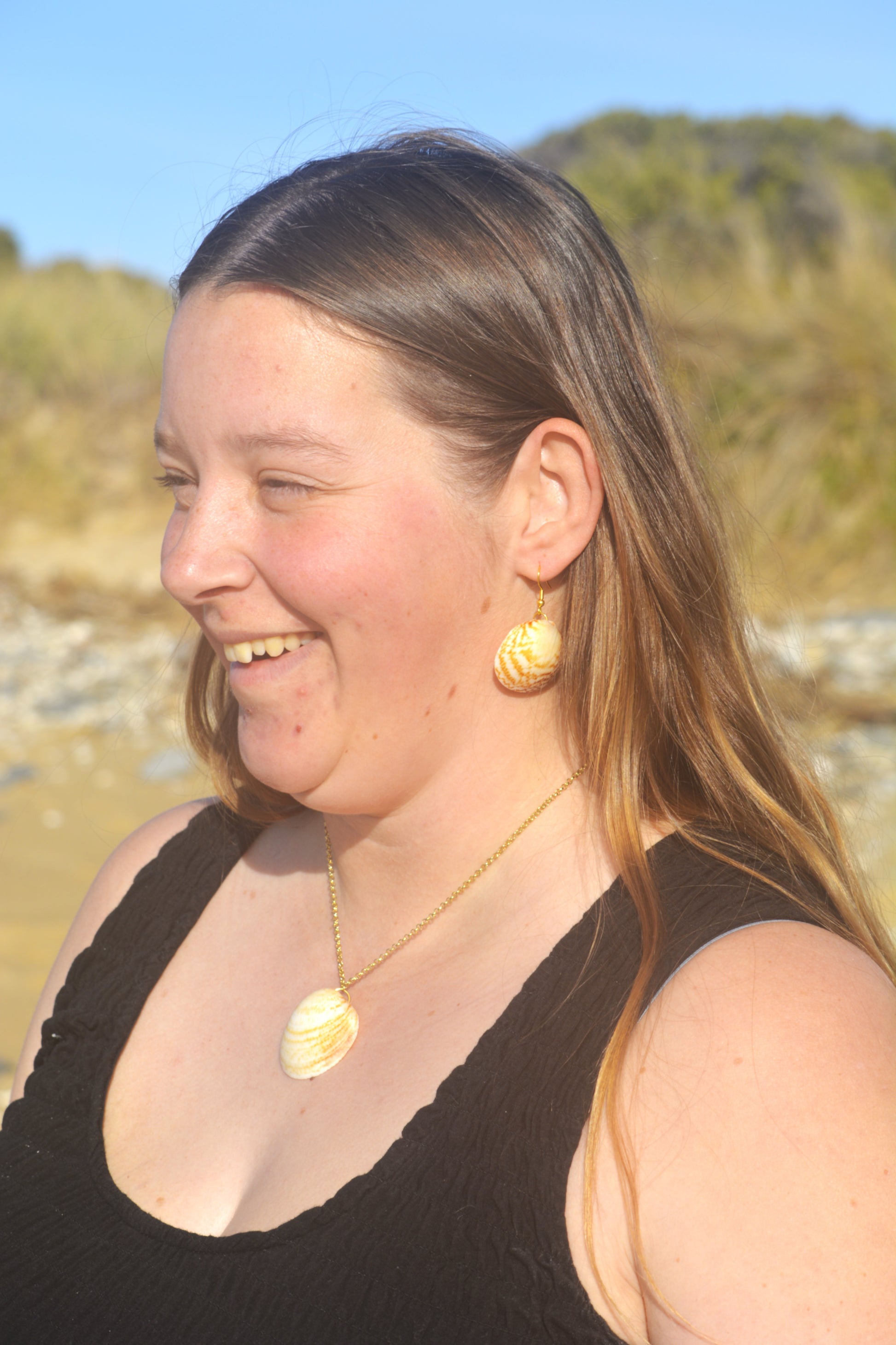 Naturally smooth and sun-bleached by the sea, these Dosinia shell earrings bring soft, coastal charm to any look. Striking, effortless, and made to go wherever the day takes you.